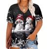 Móda Červený Štědrý den Dámské oblečení Letní tričko Výstřih do V Volné Krátký rukáv Vánoční tričko Trend Horké prodejní styly
