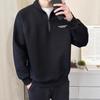 Heavy Polished Striped Knitted Semi-Zipper Stand-Up Neck Sweater Men'S Embroidery Simple Versatile Casual Top