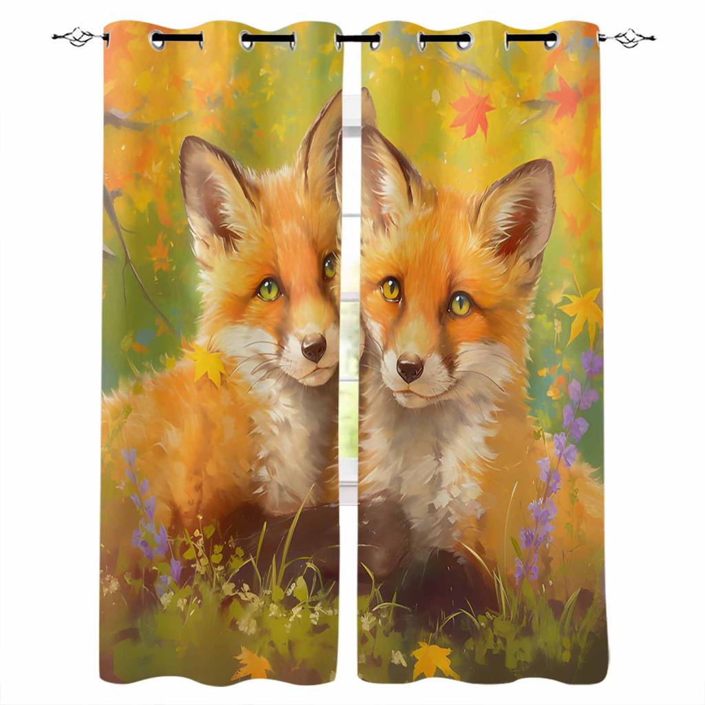 Two Foxes With Maple Leaves In Autumn Blackout Curtains For Living Room Bedroom Window Treatment Blinds Drapes