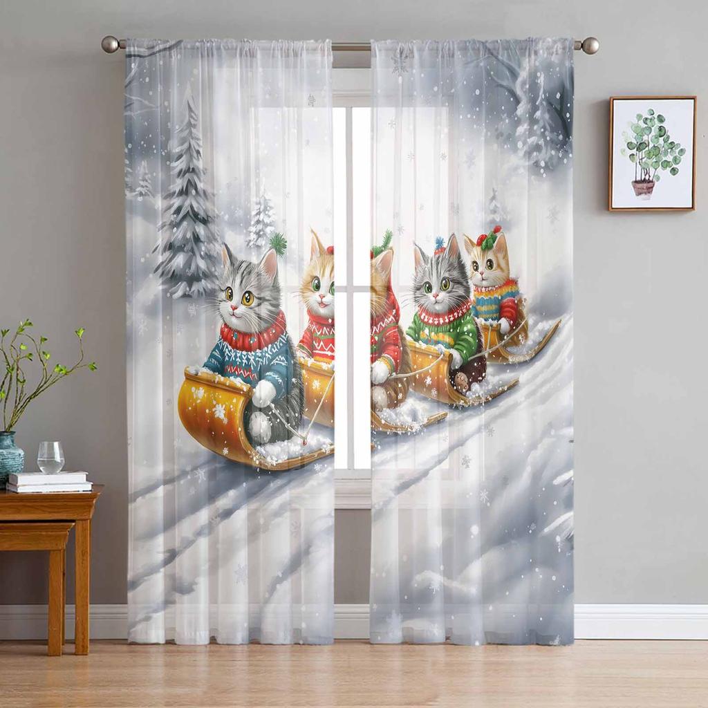 Skiing During Christmas And Winter Curtains For Living Room Bedroom Home Decoration Window Voile Tulle Curtain Drapes