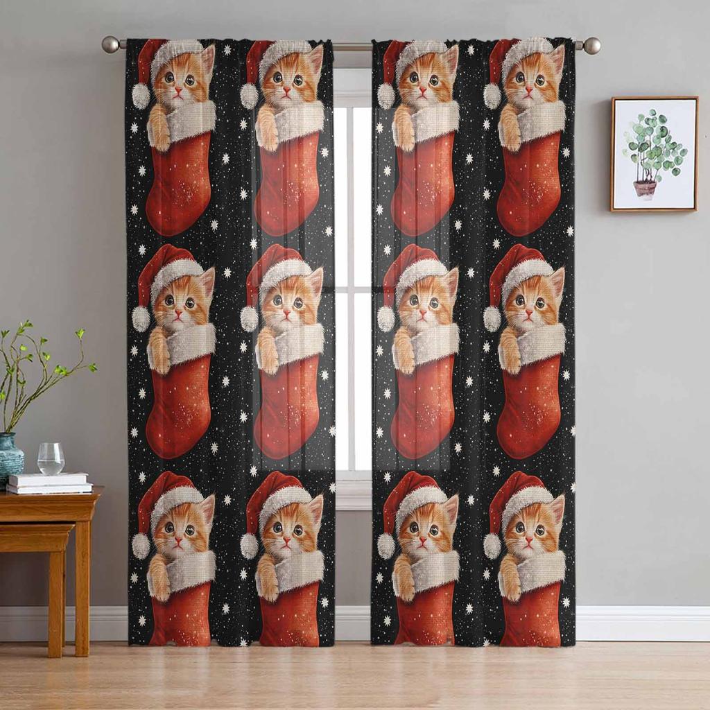 Christmas Winter Christmas Socks Curtains For Living Room Bedroom Home Decoration Window Voile Tulle Curtain Drapes