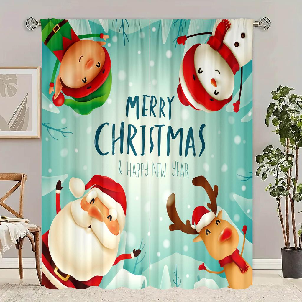 2ks- zimní vánoční dekorativní tištěné závěsy do ložnice, obývacího pokoje, pracovny, soukromého prostoru