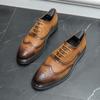 New Men British Business Casual Shoes Genuine Leather Block Lace Up Pointed Leather Shoe Brogue Carved Patterns Men Formal Shoes