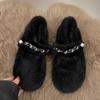 Fashion Fur Chain Women Flats Shoes Autumn New Designer Casual Shoes Women 2024 Trend Home Cotton Shoes Cozy Walking Dress Mujer Zapatos