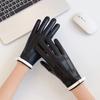 Winter Women's Sheepskin Warmth Gloves Plus Velvet Short Thin Screen Driving Female Color Leather Gloves