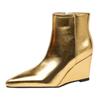 Módní klínkové dámské kotníkové boty špičaté zlaté stříbrné podpatky krátké boty zip klínky taneční párty zimní boty dámské velká velikost 45 značka