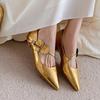 2024 Women's Flats Gold Pointed Toe Ballet Flats Flower Mary Janes Shoes for Female New Designer Singler Shoes Spring Summer