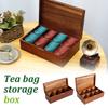 Nová dřevěná čajová krabička s víkem 6 přihrádek Retro styl Úložný držák organizér na kávové a čajové sáčky Do kuchyňských skříněk Domácí kuchyně