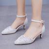 New High Heels Women's Shoes Pearl Lace Pointed Classic Sandals Thin Heels Shallow Mouth Fashion Versatile Bridal Shoes