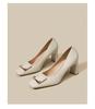 Fashion Spring new square head thick heels women's shallow mouth buckle single shoes professional shoes high heels