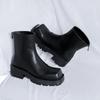 Módní platformové černé Chelsea boty se čtvercovou špičkou, design na zip v patě, krátké boty, pánské boty s vysokým svrškem z kůže, motorkářské boty, pánské boty