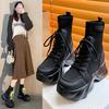 2025 Spring Women Thick Sole Ankle Boots Autumn Casual Boots Women's 7cm High Heels Wedge Boots Shoes Woman Sneakers