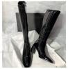 Lakovaná kůže Vysoké podpatky Dlouhé kozačky Ženy 2024 Podzim Čtvercová špička Ke kolenům Botas Žena Boční zip Silné podpatky Dámské boty