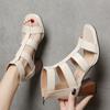 Fashion Block Heel Roman Style Sandals for Women Summer 2024 Chunky Zip Heeled Pumps Footwear Thick Ladies Shoes High Heels The Best Vip