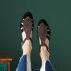2024 New Genuine Leather Baotou Sandals Women's Spliced Simple Thick Heel Shoes Women's Shoes