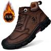 Módní Zimní Odolné Horolezecké Boty Plyšové Teplé Vysoce Kvalitní Kožené Venkovní Nepromokavé Boty pro Práci Chůzi Sněhové Boty