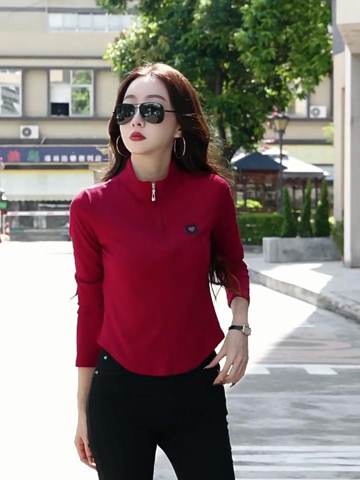 Bavlněné tričko s rolákem Jarní Dámské Korejský styl Tričko s dlouhým rukávem Knoflík Dámské Neformální topy Jednobarevné Košilka Dámské