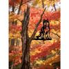 Dva psi na větvi Železná umělecká kovová silueta nástěnná dekorace pro dům, zahradu, dvůr a terasu, ideální venkovní socha jako dekorace na kůl