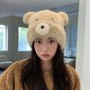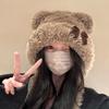 Vintage Hnědé Plyšové Medvědí Čepice pro Ženy na Zimu Ležérní Teplé Módní Všestranné Roztomilé Pulovry Čepice