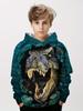 Chlapci Oblečení Móda Dinosauři řvoucí Potisk Chlapci Topy s dlouhým rukávem Mikina s kapucí Podzim Zima Mikina Dětské Oblečení