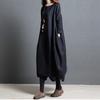 Dámské šaty volné extra velikosti bavlněné lněné šaty s dlouhým rukávem a kulatým výstřihem