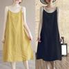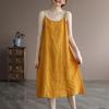 Letní umělecké volné jednobarevné bavlněné konopné šaty s výstřihem do V bez rukávů střední délky pro ženy