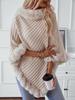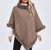 Fashion Plaid Stripes Faux Fur Pullover Cape Coat Women Autumn Winter Knit Poncho Cloak Wraps Travel Leisure Party Shawl