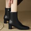 Módní krátké boty pro ženy, podzim 2024, nové vysoké podpatky, silný podpatek, čtvercová hlava, boční zip, dámské kotníkové boty, černé, Botas Mujer