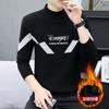 Men's Autumn Winter Turtleneck Flocking Letter Pullover Solid Long Sleeve Sweater Knitted Casual Undershirt Vintage Loose Tops