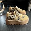 Móda 2024 Podzim Nové Boty na silné podrážce Jednoduché Dámské Kulatá špička Leopardí potisk Barevné sladění Šněrovací Vycházkové boty s nízkým svrškem