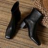 Woman Black Leather Ankle Boots Western Retro Women Boots Increased Inner Heel Boots Brown Square Toe Autumn Lady Concise Shoes
