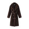 Dámský podzimní zimní zahuštěný dlouhý kabát z norkového sametu, luxusní bunda z imitace králičí kožešiny s páskem, klopami, trenčkot