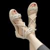 Footwear Zip Sandals for Woman Rhinestones Women's Shoes with Low Heels Summer 2024 Roman Style Diamond Green F H Daily Vintage