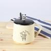Keramický hrnek s kreslenou včelou a víčkem s lžičkou, keramické hrnky na kávu, doprava zdarma, originální snídaňové hrnky, vánoční dárkové sady kávových hrnků