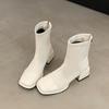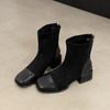 High Heels Ankle Boots Women Knitting Leather Shoes Fashion Square Toe Winter Shoes Woman 2024 Trend Pumps Chelsea Botas Mujer