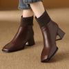 Leather Chunky Women Ankle Boots Square Toe Fashion Mid Heels Shoes 2025 Trend Elegant Pumps Winter Classic Goth Botas De Mujer