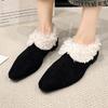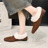 Dámské bavlněné pantofle s kožešinou a čtvercovou špičkou, semišové boty na nízkém podpatku, podzimní boty slingback pro ženy, módní trend 2025, dámské boty
