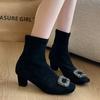 Suede Women Ankle Boots Chunky Crystal Fashion Mid Heels Shoes Winter 2024 New Trend Elegant Pumps Woman Snow Short Botas Mujer