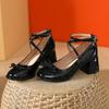 Červená Mary Jane Dámské Lodičky Silné vysoké podpatky Boty Dámské Lolita Boty se čtvercovou špičkou Jarní móda Párty Kožené Dámské Boty Nové