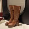 Platformové kozačky nad koleno Dámské vysoké podpatky Chelsea boty Robustní 2024 Trend Zimní Nové Sněhule Teplé Kožené Lodičky Zapatos Mujer