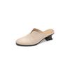 2024 New Sexy Women Genuine Leather Pumps Round Toe Spring Summer Muller Slippers High Heeled Fashion Party Wedding Shoes Woman