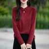 Podzimní a zimní nový čínský pletený top s knoflíky, dámské topy, měkké retro spodní tričko