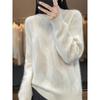 This stylish women's sweater features a half-high collar and is crafted from 100% wool, providing excellent warmth and comfort. Designed with a solid color pattern, it offers a sophisticated look suitable for various occasions. The thick, loose-fitting silhouette ensures a relaxed yet flattering fit, making it a versatile addition to your wardrobe. With its long sleeves and slim knit design, this sweater perfectly balances elegance and coziness, ideal for chilly days.