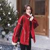WTEMPO Knoflíky Stojáček Vánoční Červený Kabát s Kapsami Dámské Hřejivé Podzimní Zimní Velká Velikost Plyšové Bundy