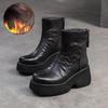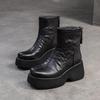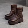 Johnature Všestranné Krátké kozačky z pravé kůže Retro Kulatá špička Dámské boty s tlustou podrážkou