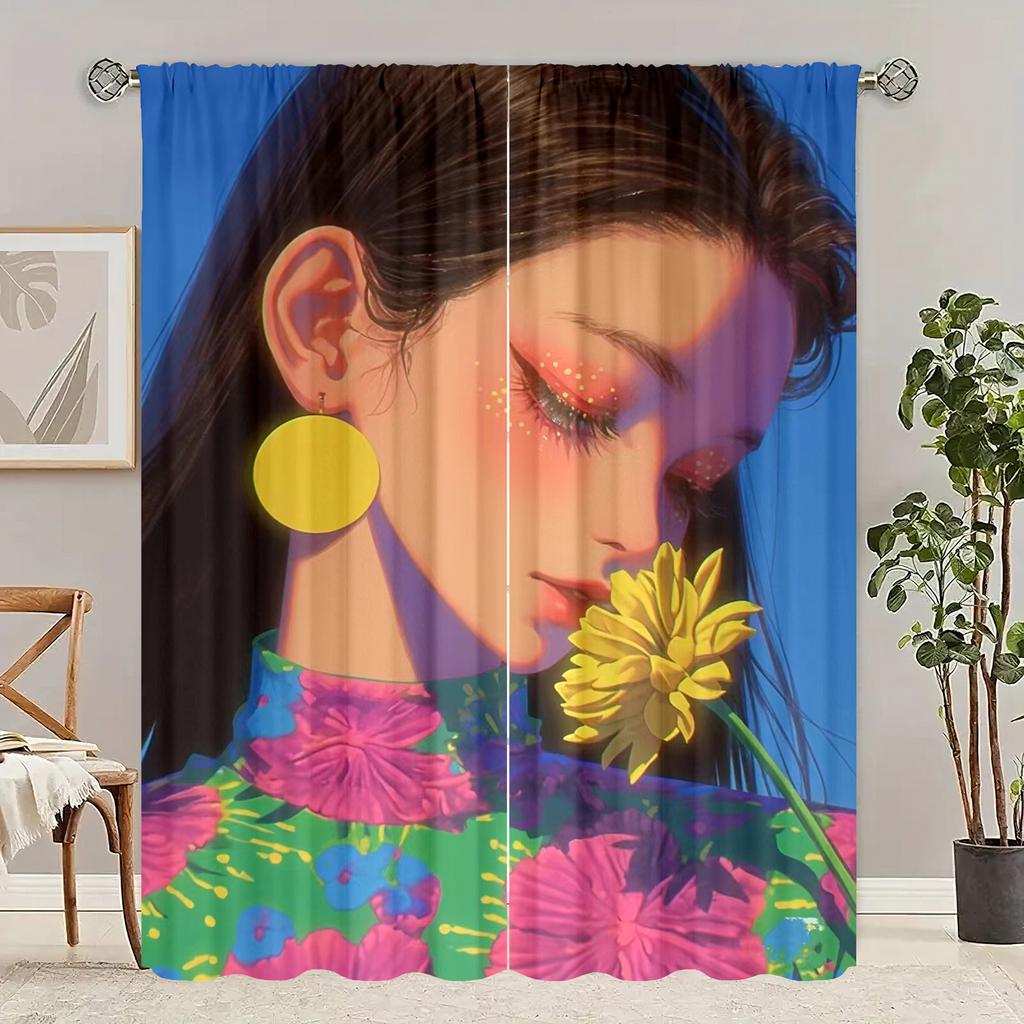 2 pieces - Figure - printed curtain - Polyester material - suitable for bedroom, living room, study private curtain