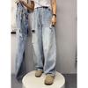 Retro Jeans Pánské podzimní Nový styl Výbušný Street Hooligan Pěkné ležérní kalhoty pro teenagery Volné rovné nohavice široké pánské kalhoty
