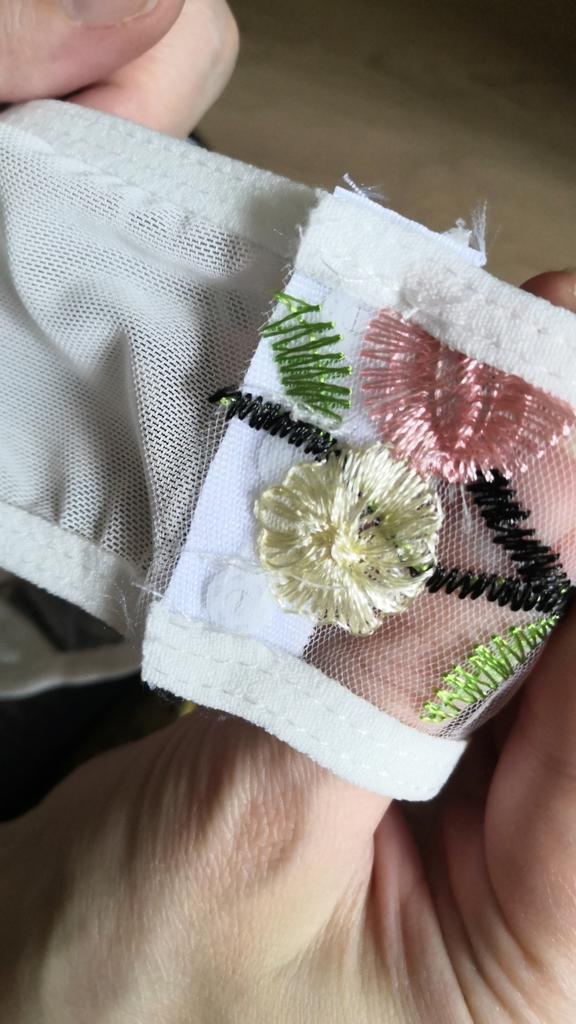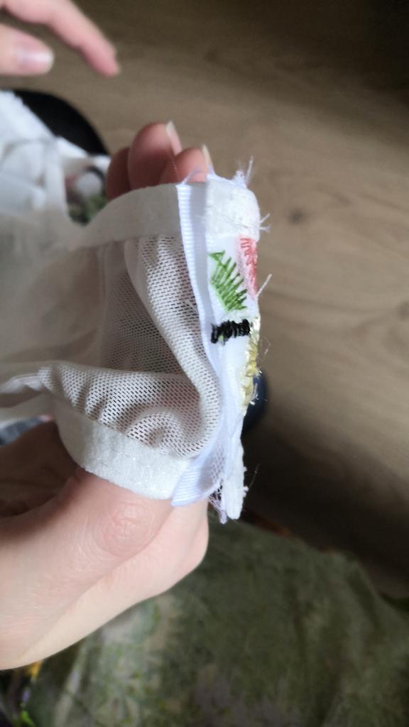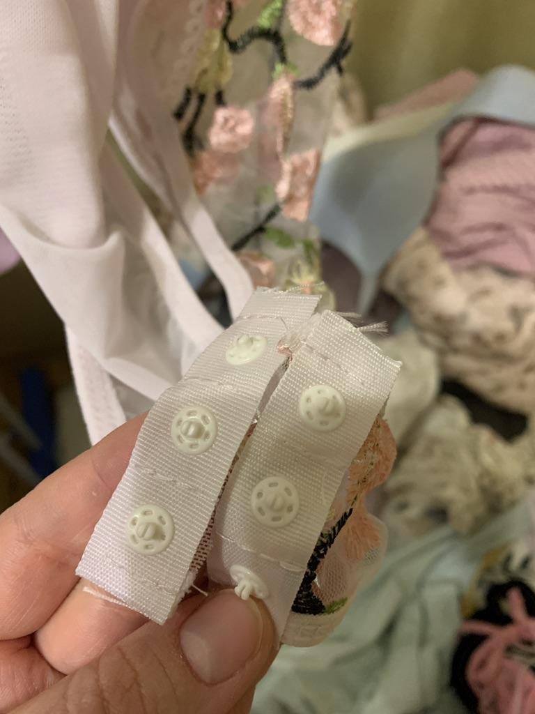 souprava vyvolala smíšené pocity. na jednu stranu je krásná a skvělá, ale na druhou stranu je v oblasti zapínání dole neopracovaný okraj, který se začíná párat, a navíc je dívce prostě nepohodlná na nošení kvůli tvrdé podložce knoflíků