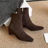 Dámské hnědé kotníkové boty se skrytým zvýšením výšky, módní kotníkové boty se čtvercovou špičkou, dámské boty 2024 podzim, venkovní ležérní boty