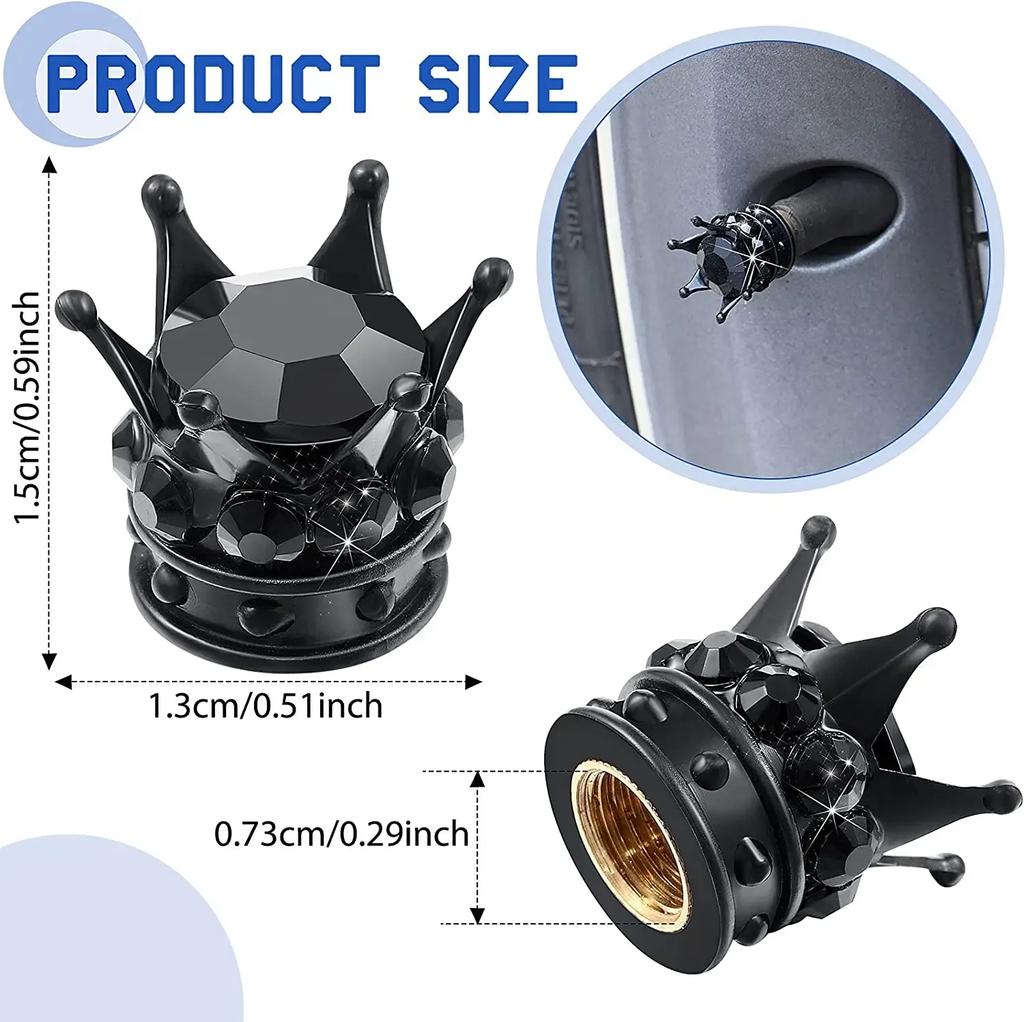 4 ks Čepičky ventilků pneumatik Korunka Bling Křišťálové kamínky Univerzální Chromovaná Korunka Krytky ventilků pneumatik pro vozidla Autodoplňky